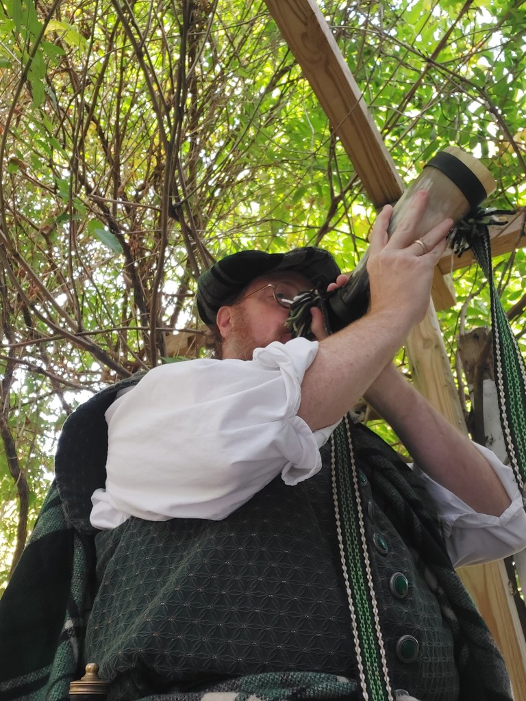 Tools – Demonstrating these lessons I used a period style cow horn that I strapped and belted myself. I have a heraldic straight trumpet and a folded trumpet, or bugle as it’s known today. The rams horn shofar was a great addition to the lesson.