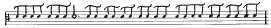 Here we see the closest tablature to modern understanding. While it’s tempting to say we can read and play this, it’s not entirely true. This represents a series of notes in a line and only one note being long while all other notes are short without any change of rhythm. However, the difference in the number of eigth note banded together indicates groups which would naturally need pauses in between to give the call changes in rhythm.