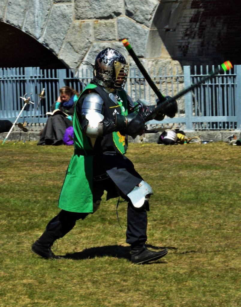 In this area of study my favorite forms to fight with are sword and shield followed by great sword. I am authorized to fight in those along with the other forms used in the SCA, Polearm, Spear, Two stick and Combat Archery. When fighting in a tournament I will choose sword and shield or great sword as they are my better forms ones that I enjoy the most. In a tournament you are fighting a single opponent in a contest of skill therefore it’s important to put your best foot forward however there are some tourney rules that may force you to fight with a different form so I try to keep practicing my other forms.